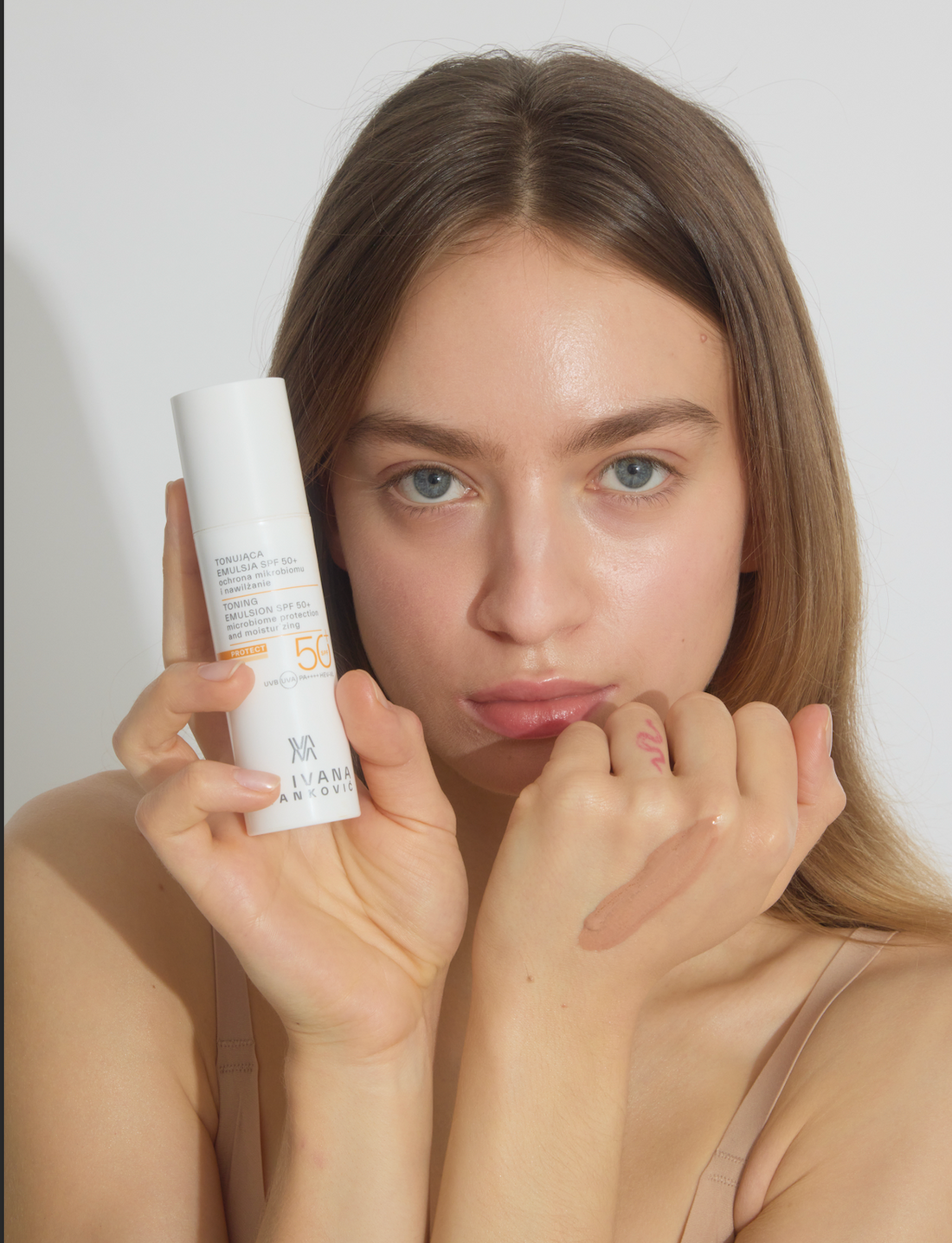 • Tinted Emulsion SPF 50+ (50 ml) – a lightweight sunscreen with a subtle tone-evening effect. It protects against UVA, UVB and blue light while giving the skin a naturally healthy look.